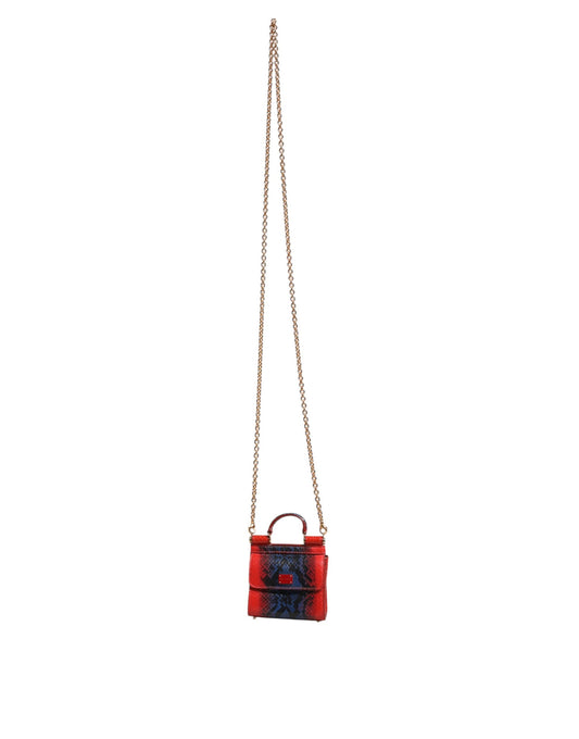 Dolce & Gabbana Red Blue Leather Sicily Crossbody Chain SatchelBorse Bag