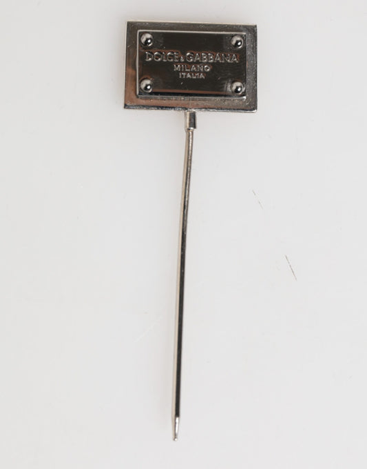 Dolce & Gabbana Silver Tone Logo Plaque Lapel Men Accessory Brooch Pin