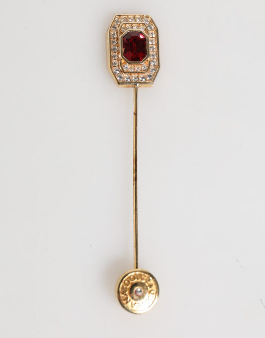Dolce & Gabbana Gold Brass Red Crystal Spilla Serpente Mens Brooch Pin