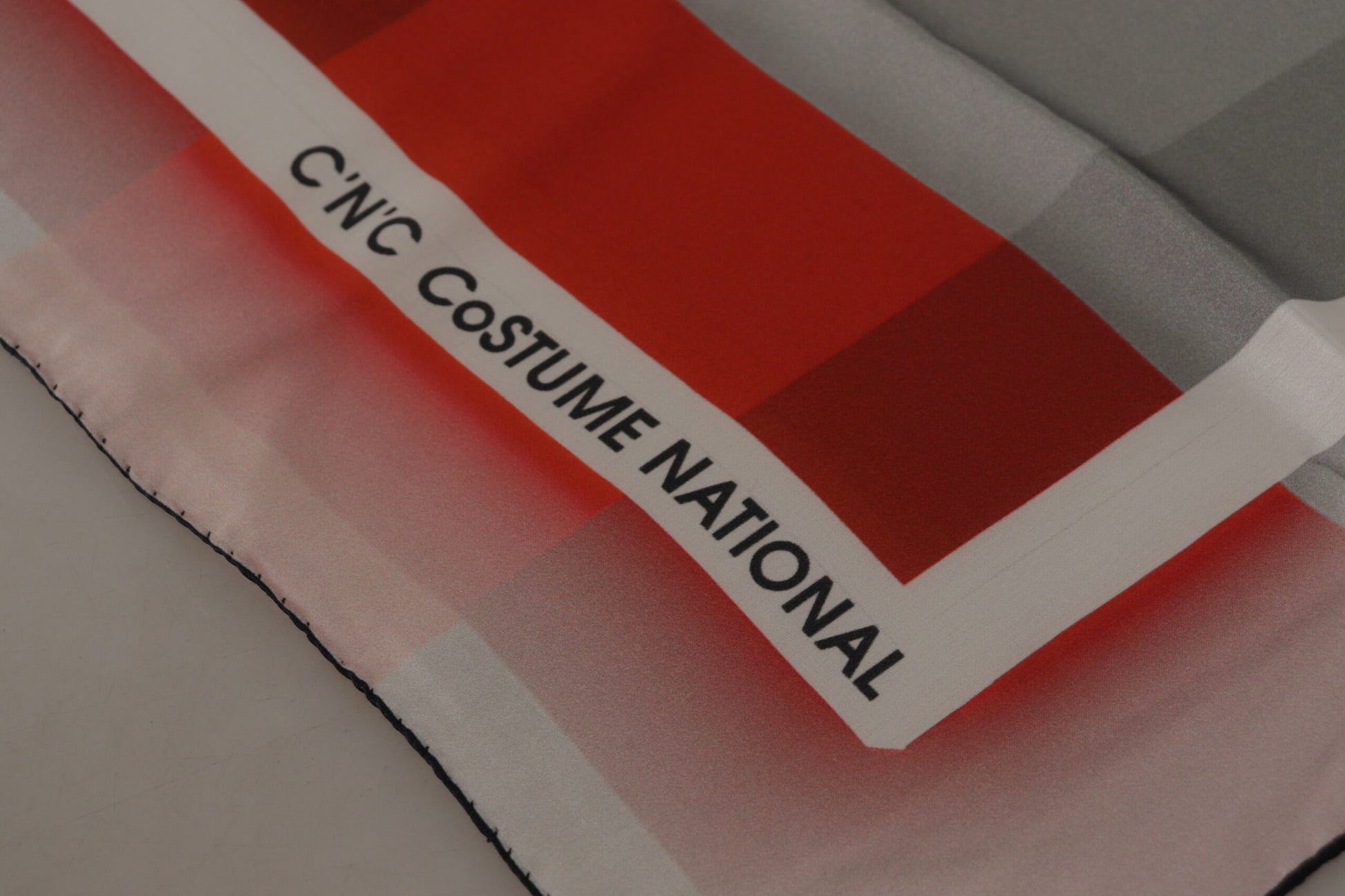 Costume National Gray Red Shawl Foulard Wrap Scarf