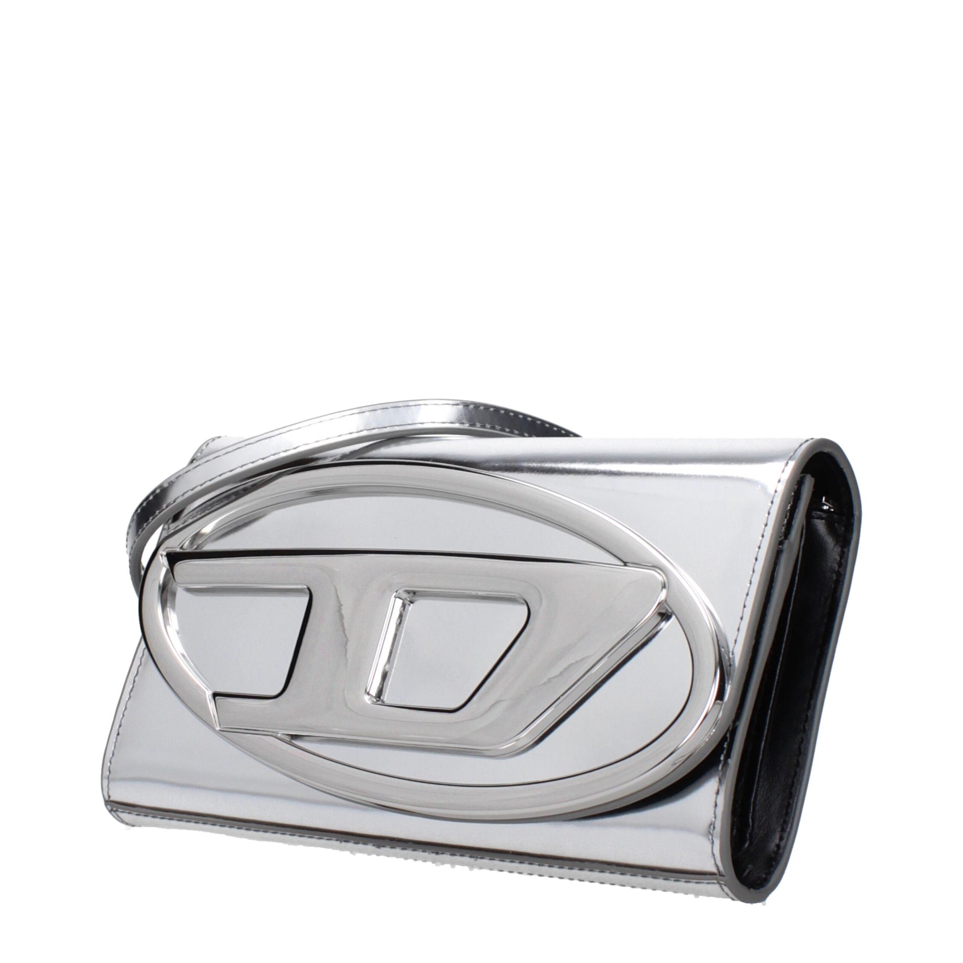The product with MPN X09809PS202H0535 and code F82451 patent leather in silver is a clutches designed by Diesel. It has features like front logo, adjustable shoulder, removable shoulder.