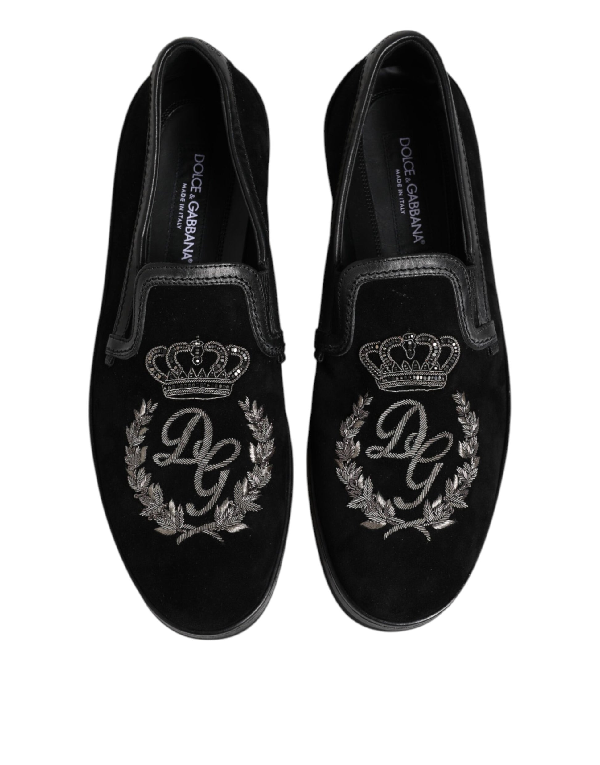 Dolce & Gabbana Black Embroidered Crown Loafers Shoes