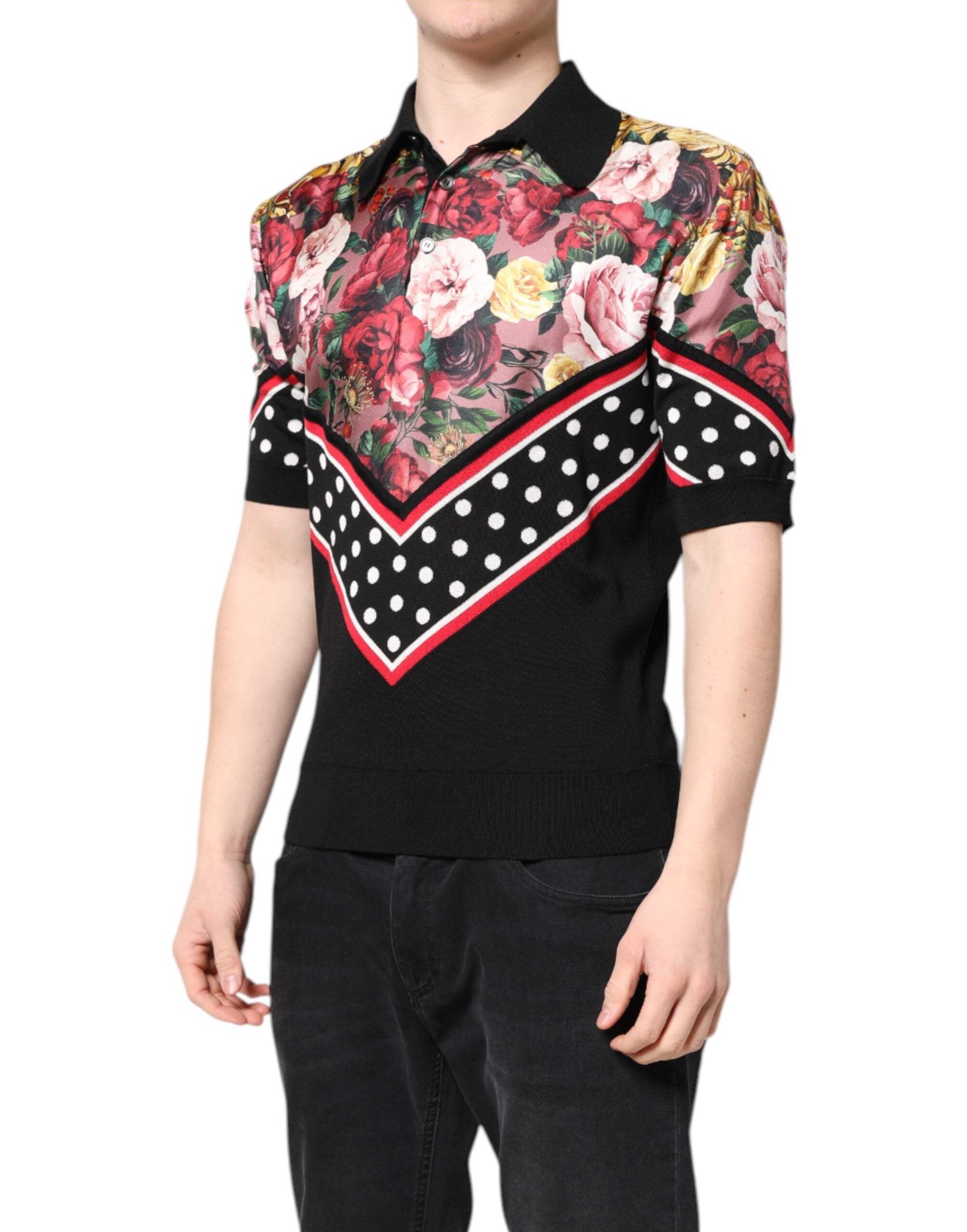 Dolce & Gabbana Black Floral Collared Short Sleeve T-shirt