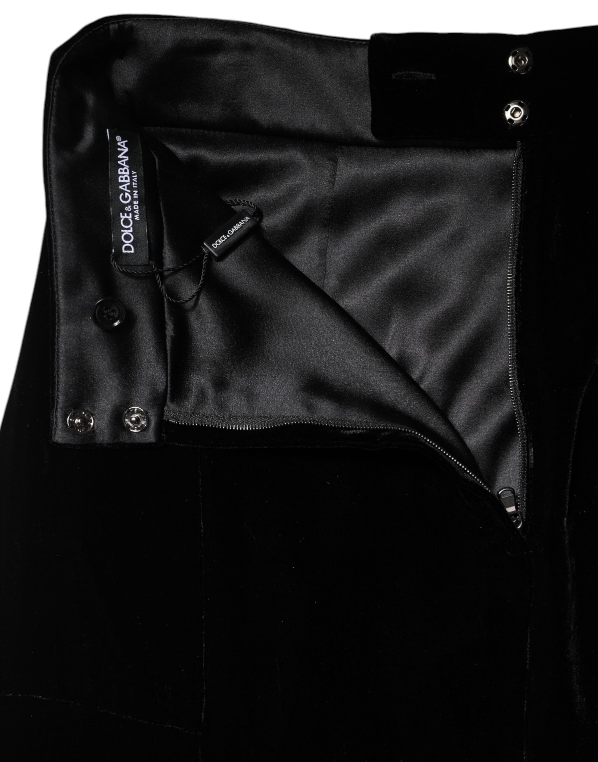 Dolce & Gabbana Black High Waist Fit Flared Midi Skirt