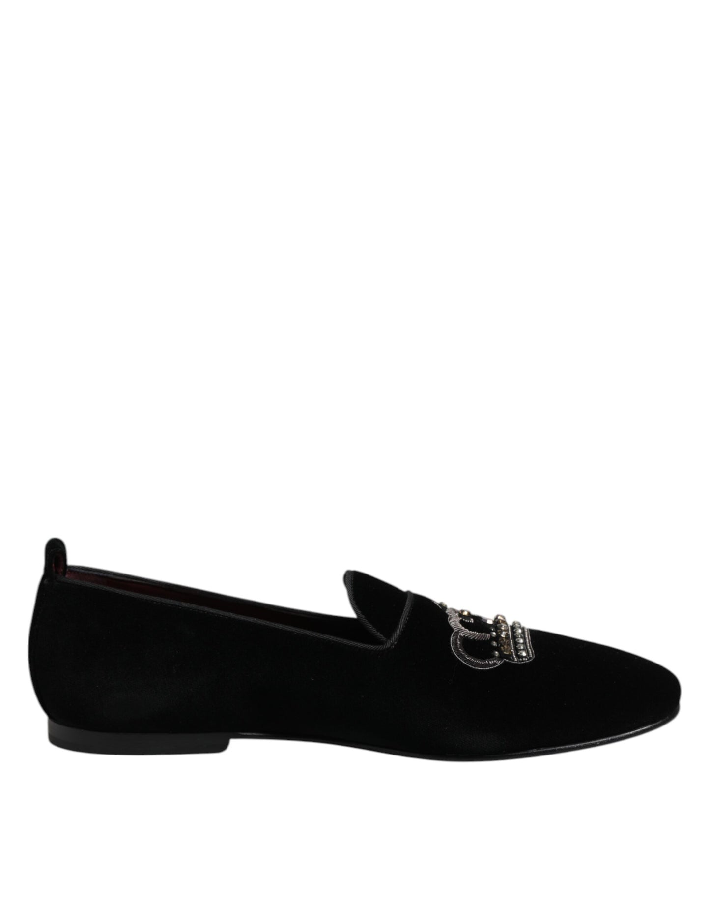 Dolce & Gabbana Black Velvet Crystal Crown Loafers Dress Shoes