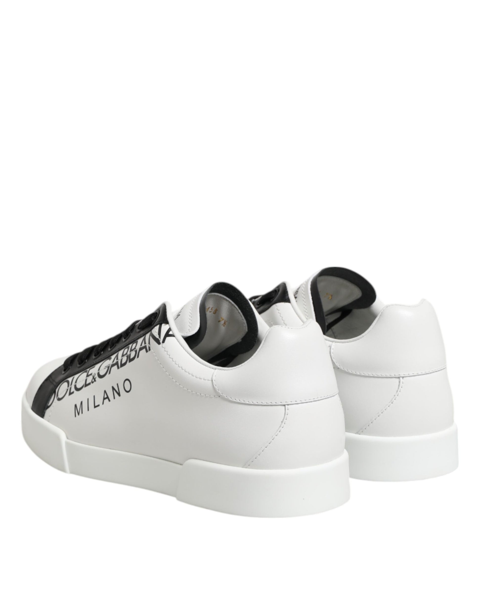 Dolce & Gabbana Black White Leather Portofino Sneaker Shoes