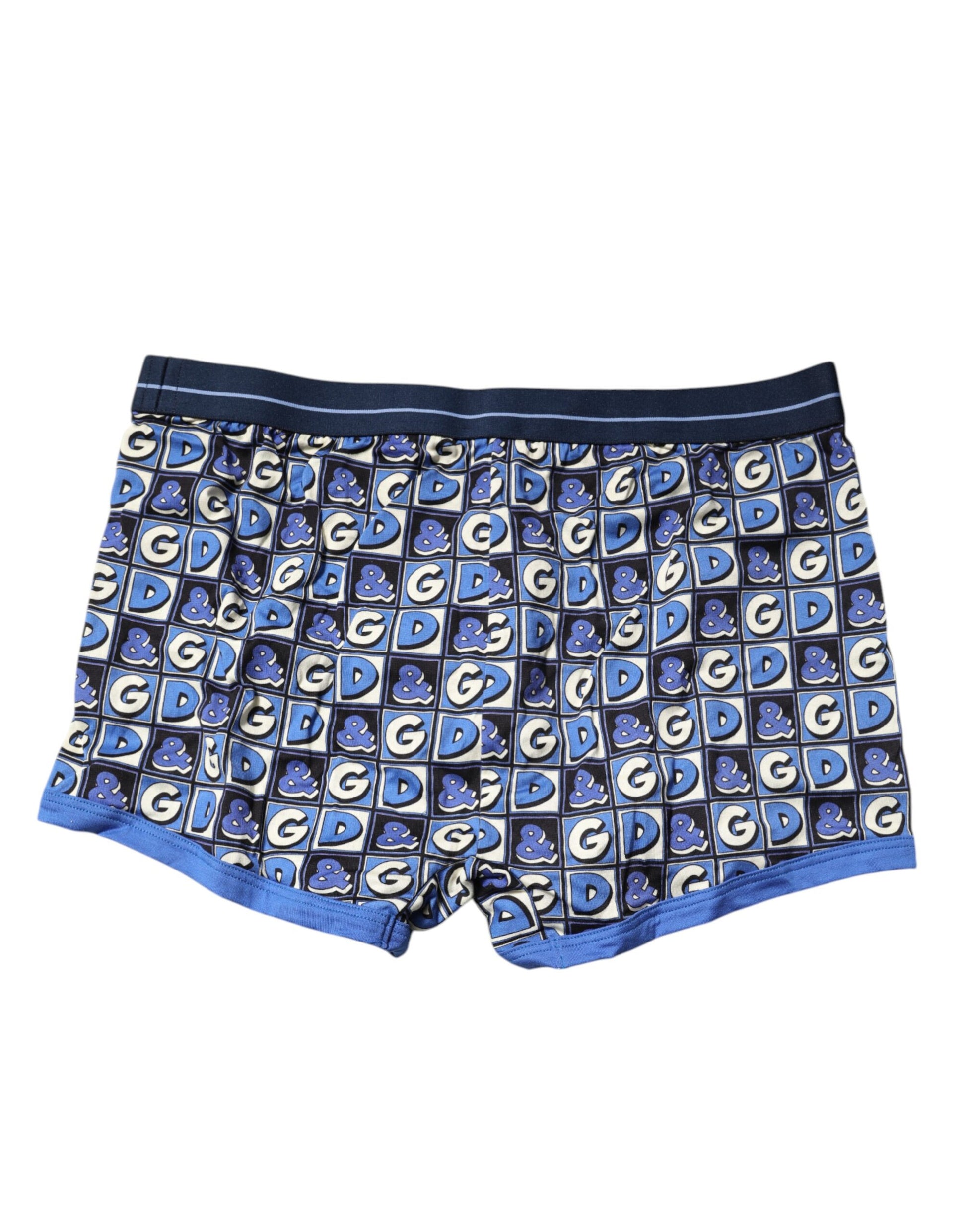 Dolce & Gabbana Blue Cotton Logo Print Regular Boxer Underwear