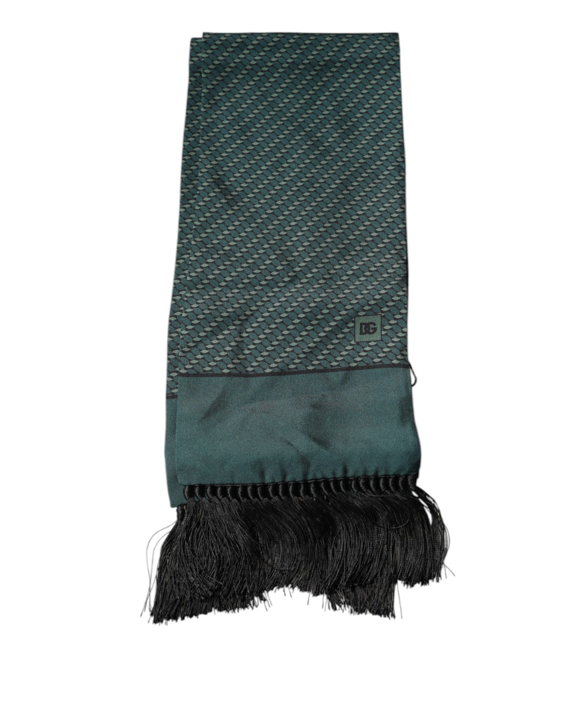 Dolce & Gabbana Dark Green Fantasy Fringes Neck Wrap Scarf