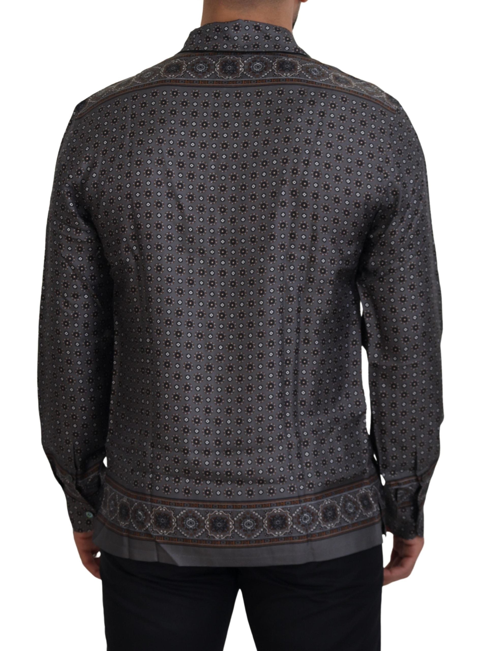 Dolce & Gabbana Gray Baroque Silk Satin Casual Shirt