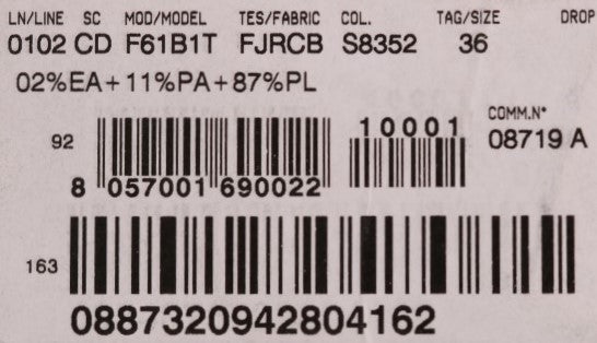 Material: 87% polyester, 11% polyamid, 2% elastan