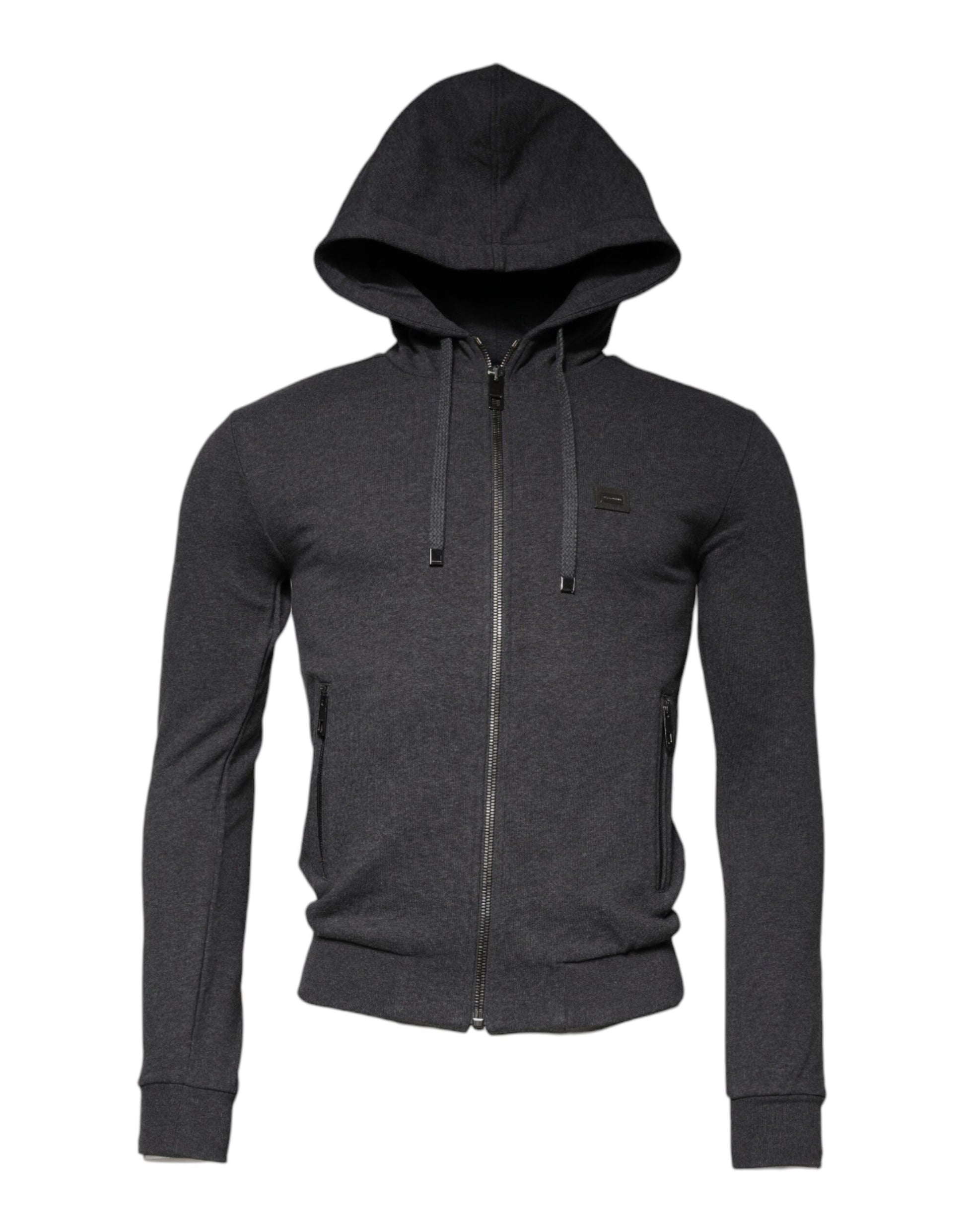 Dolce & Gabbana Gray Logo Full Zip Hooded Sweatshirt Sweater