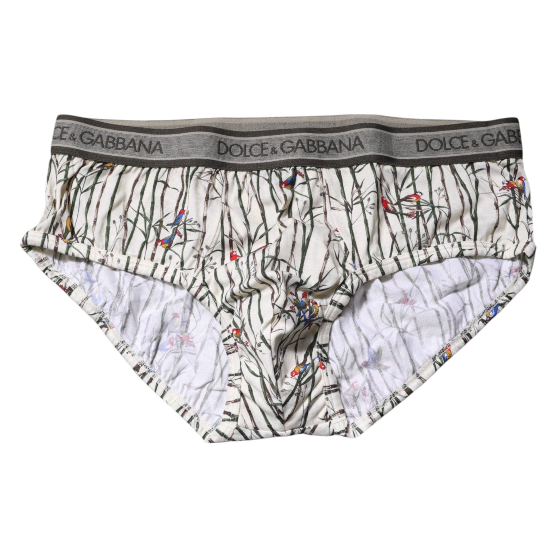 Dolce & Gabbana Ivory Bird Print Cotton Regular Brief Underwear
