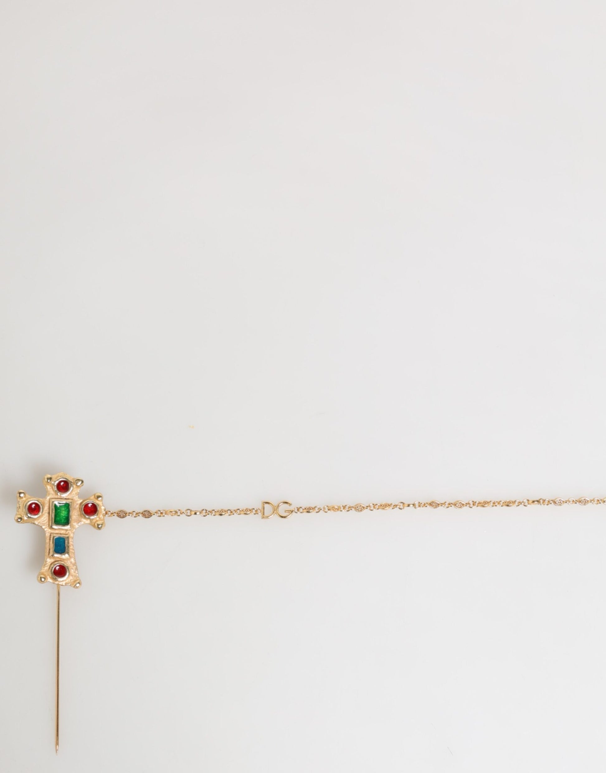 Dolce & Gabbana Lapel Pin Cross Logo Gold Chain Mens Accessories Brooch