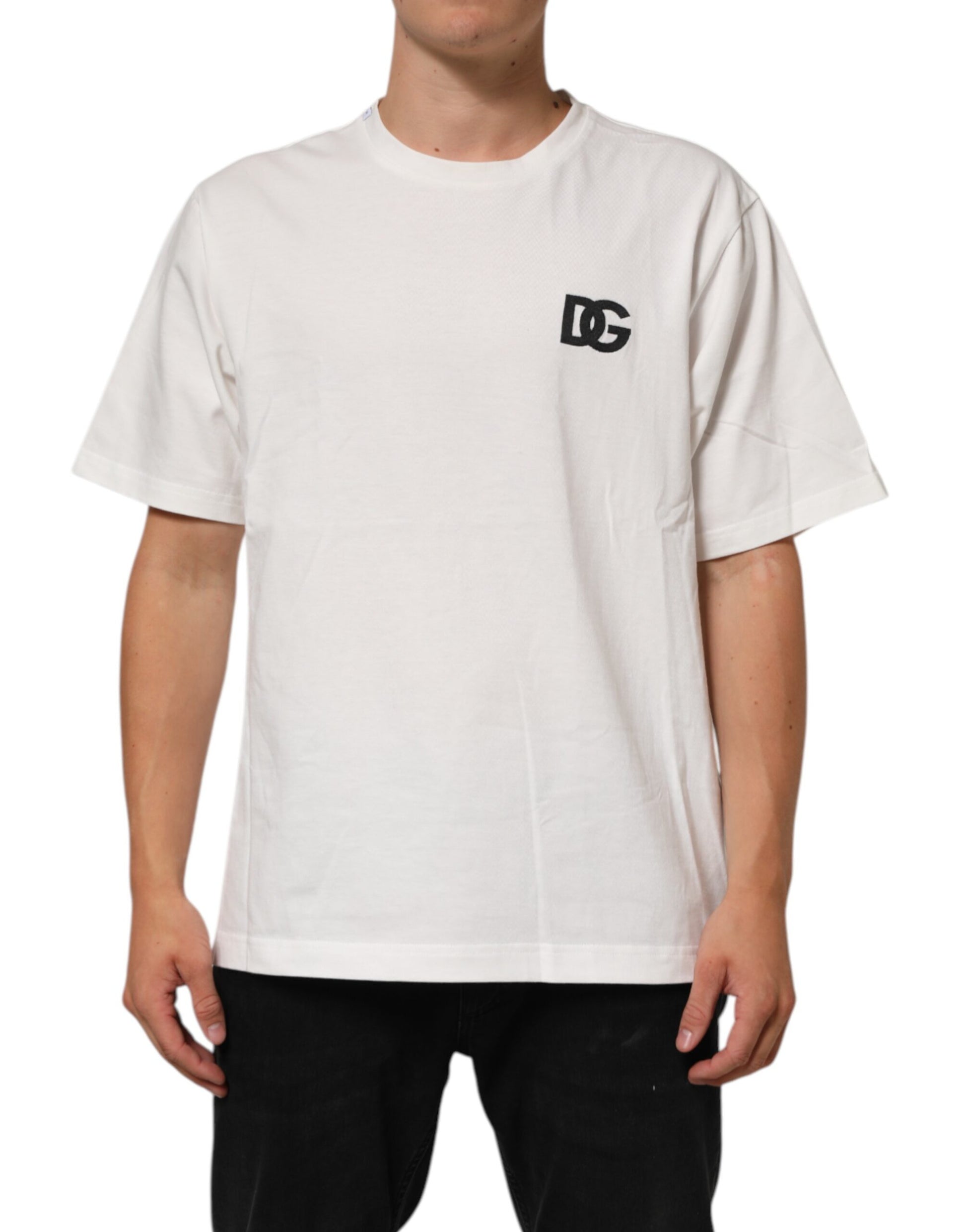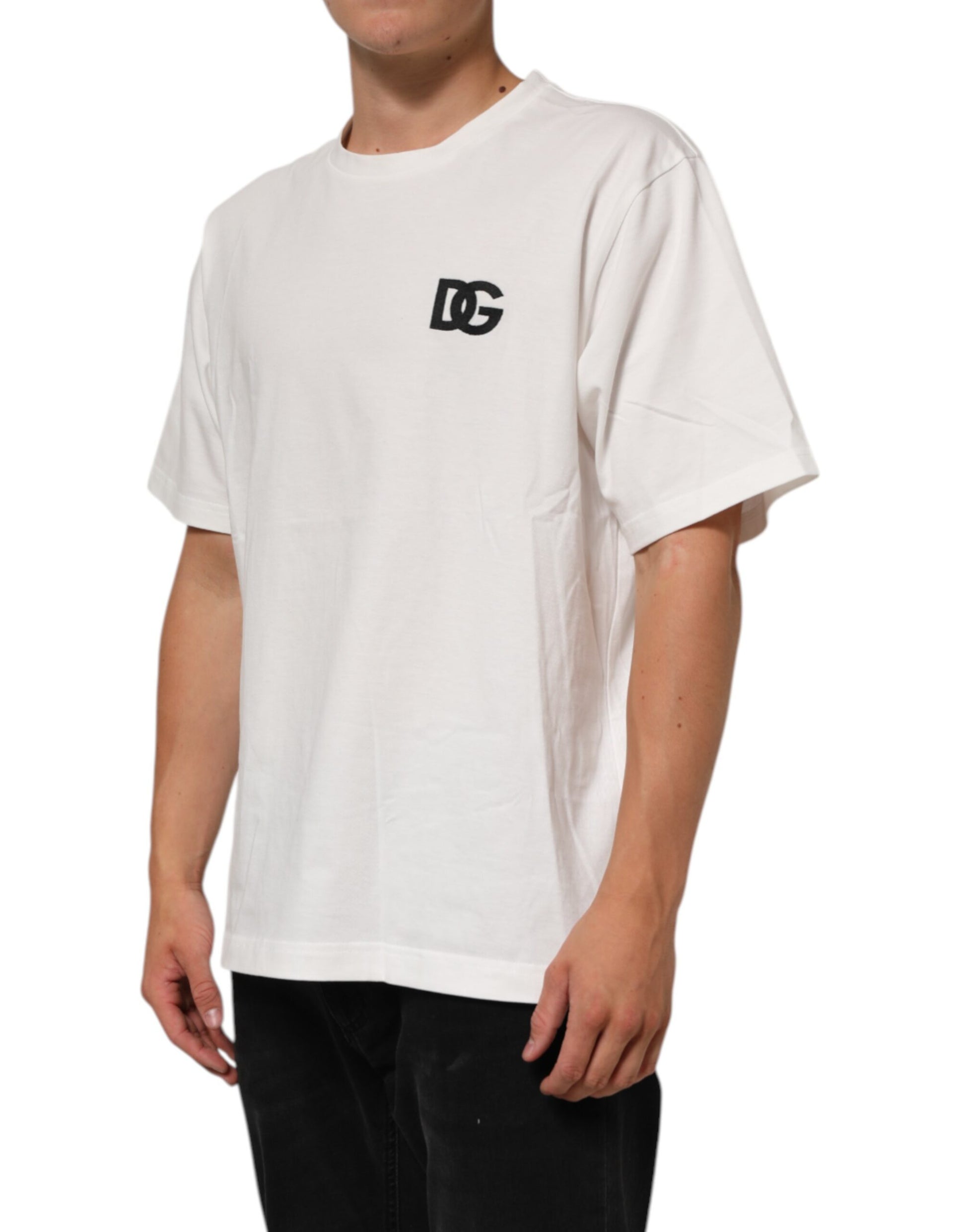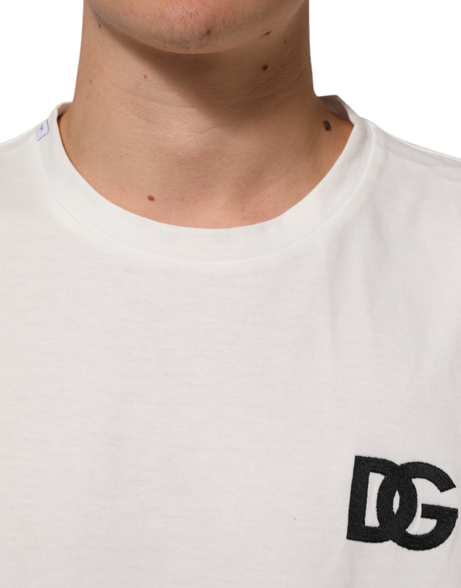 Dolce & Gabbana White Cotton Logo Print Crew Neck T-shirt