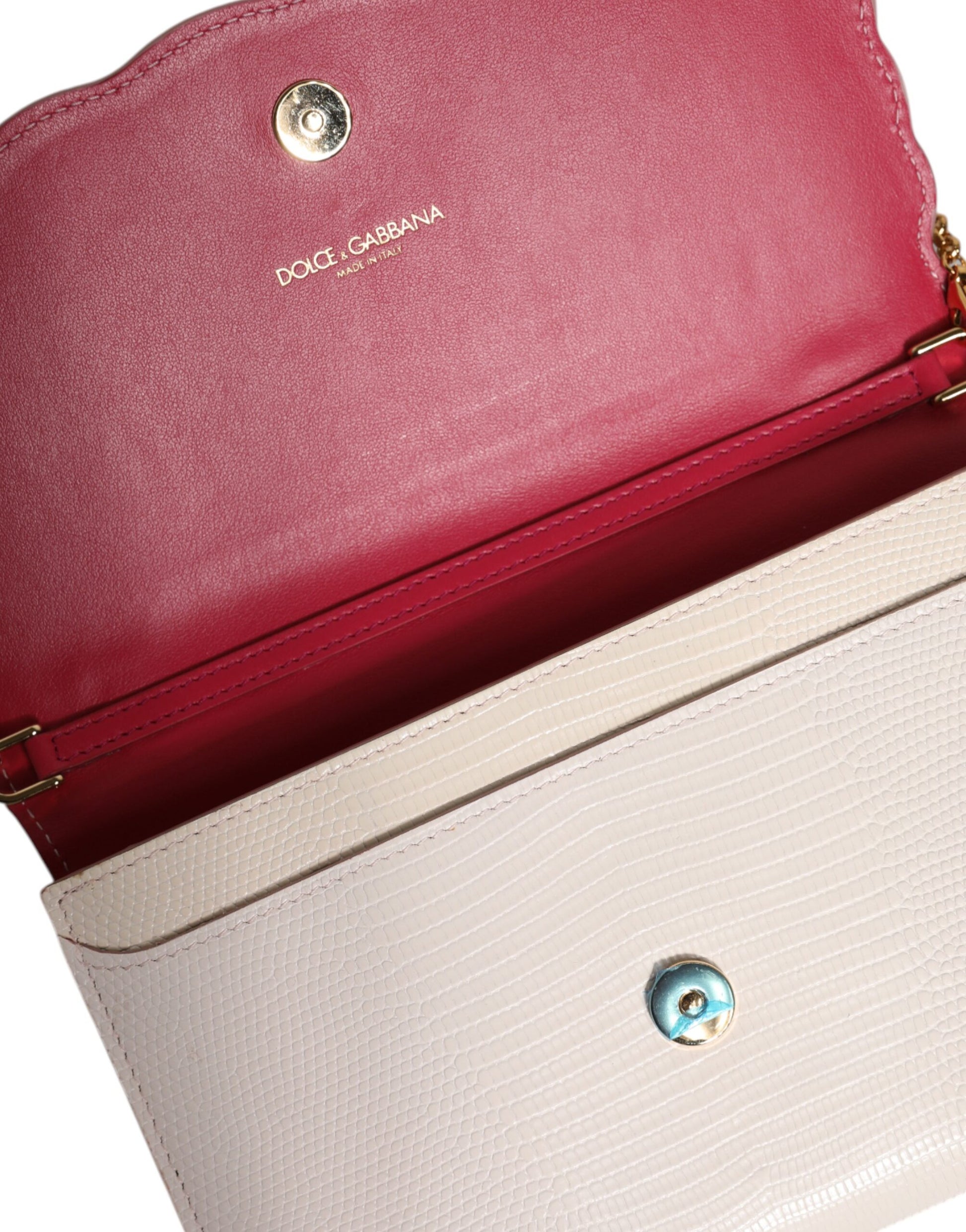 Dolce & Gabbana White Floral Leather Wallet Crossbody Gold Chain Bag