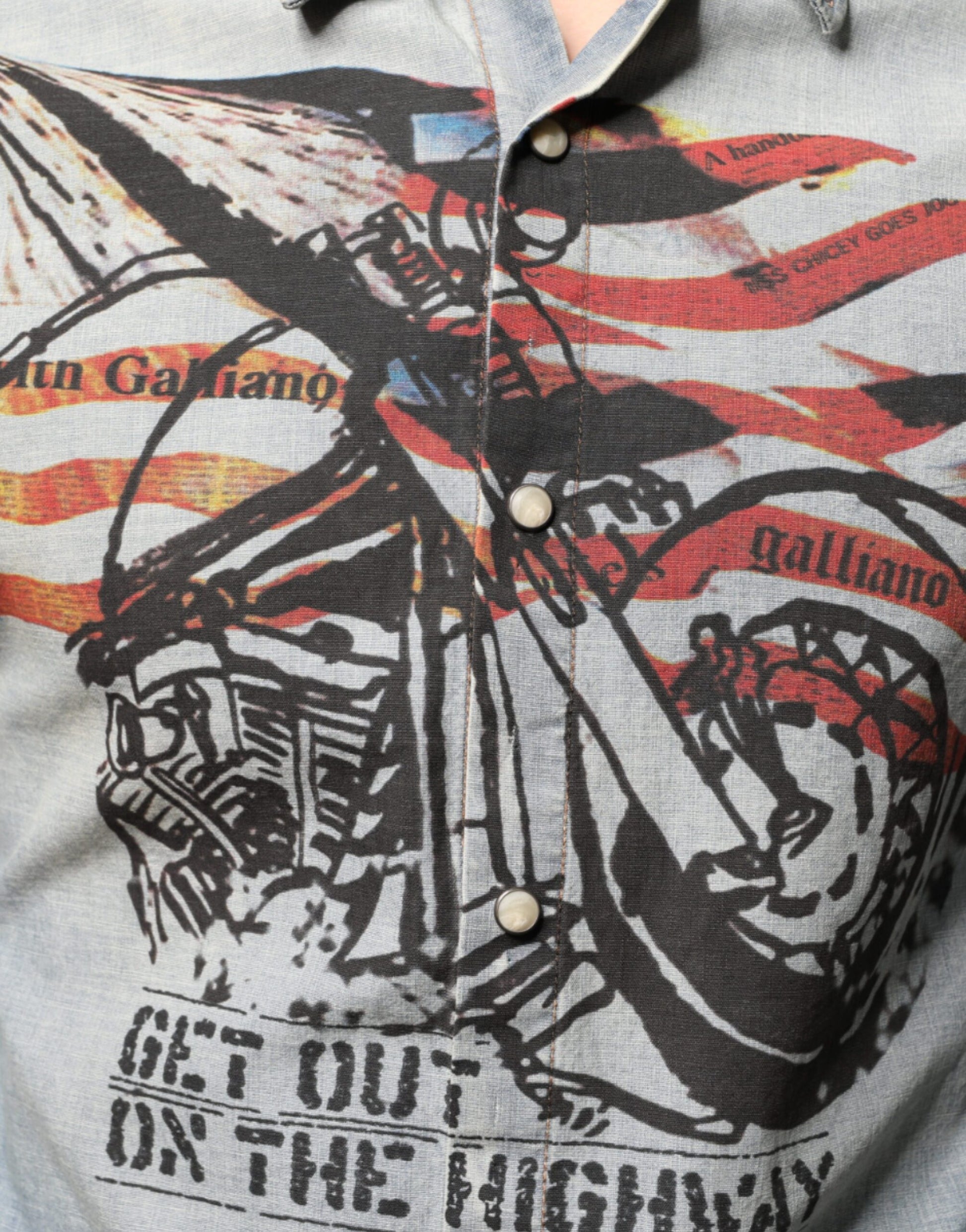 John Galliano Light Blue Printed Cotton Denim Long Sleeves Shirt