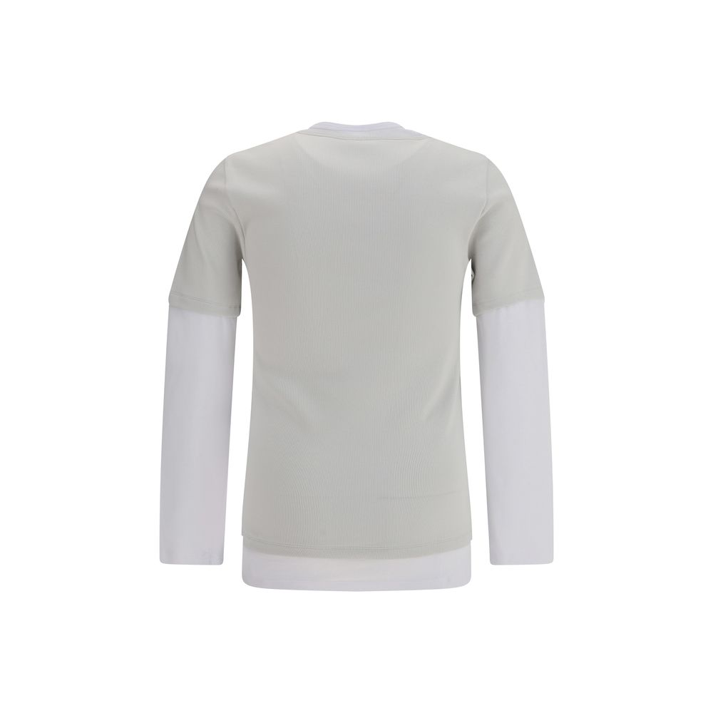 The Trauma Long Sleeve Jersey by Magliano features an innovative design with a double layer effect, combining a short-sleeved jersey with a t-shirt on top. The outer layer is ribbed, while the iconic monogram embroidered tonal on the front adds an elegant and discreet detail. The slim fit gives a tapered silhouette, making this garment perfect for a modern and dynamic look.
