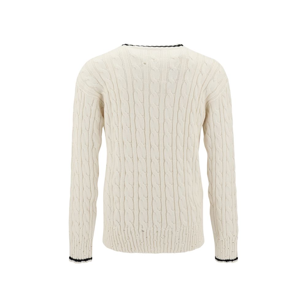 Marni’s cotton Sweater is a stylish and versatile piece perfect for those seeking a refined yet casual look. Featuring a V-shaped front drape, which adds a touch of originality, the sweater has ribbed cuffs and a high ribbed hem, which help define a clean, modern silhouette. The cable-knit weave gives the garment an interesting texture, adding depth and sophisticated visual detail.