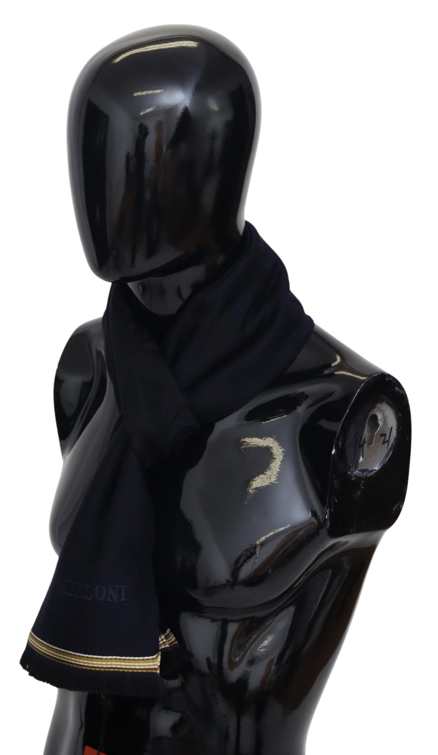 Missoni Black 100% Wool Unisex Neck Wrap Fringes Scarf