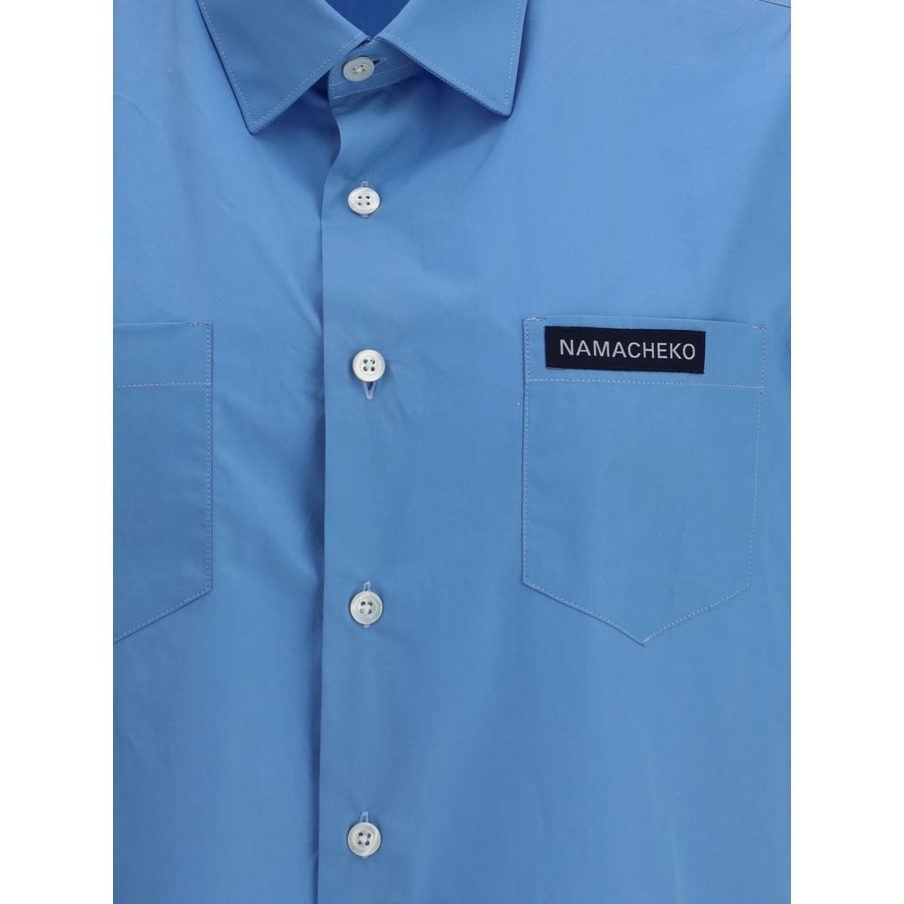 Namacheko’s cotton Guard Shirt offers a modern and functional design. The short-sleeved design features a classic collar and a front button closure. Two welt patch pockets on the front and a patch with the brand’s iconic monogram on one pocket add a distinctive touch. Side slits and an asymmetric hem complete the garment, giving it a unique and contemporary silhouette.