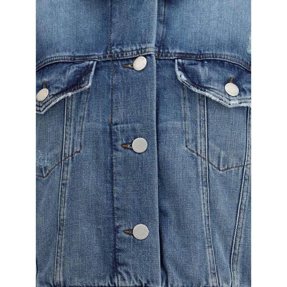 Pinko’s Denim Jacket features a classic collar and front button closure. Complemented by two front patch pockets with flaps and two side welt pockets, it combines practicality and style, making it a versatile and modern garment.