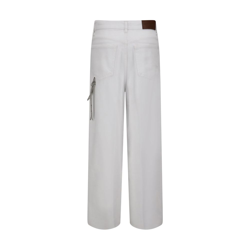 Pinko’s Lauryn Jeans reinterpret denim in a glamorous way with a loose fit design and refined details. The five-pocket style features a zip-and-button closure and is distinguished by a loose, contemporary fit. On the back, a logo patch adds an iconic touch, while the jeweled chain detail gives a bright and feminine accent, perfect for elevating even the most casual looks. A versatile garment that combines comfort and style with Pinko’s unmistakable attitude.