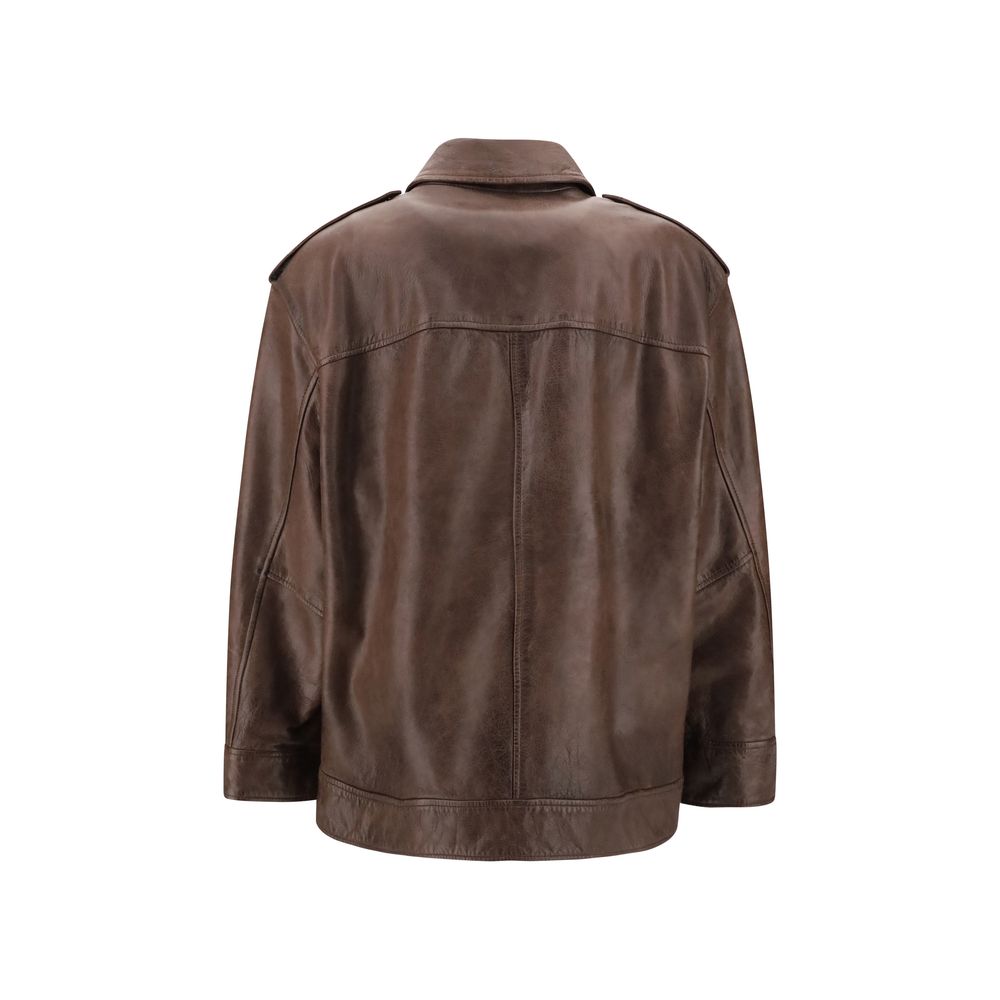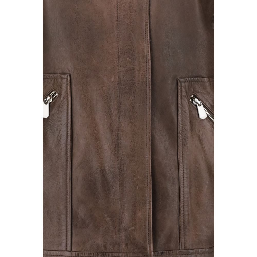 Pinko’s Leather Jacket combines punchy style with essential lines. Featuring a classic collar, it has a front closure with concealed zipper and snaps. Patch pockets on the front, with slanted zippers, add a dynamic touch to a garment with decisive elegance.
