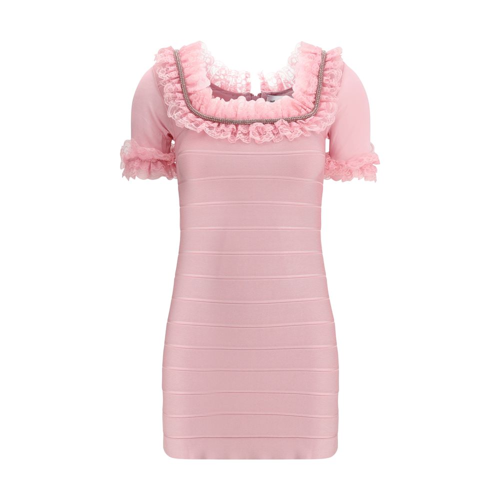 The Ruffle Knit Mini Dress from Self-Portrait is an elegant and feminine piece, featuring a short-sleeved design that ensures coolness and comfort. The square neckline is embellished with lace and rhinestone details, adding a touch of glamour and sophistication. The back zipper ensures a perfect fit, while the lace detail on the sleeves provides an additional delicate accent. The striped design creates a modern and dynamic silhouette, making this dress ideal for special occasions or evening events.