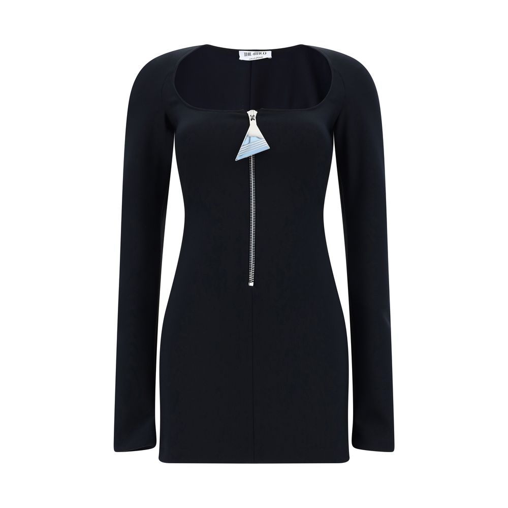 The Mini Dress by The Attico is a bold and contemporary design featuring a form-flattering fitted silhouette. It features long sleeves and a front neckline that adds a sensual touch. The front closure is defined by a zipper with the iconic metallic maxi logo, a distinctive detail of the brand. A bold garment designed for striking looks.