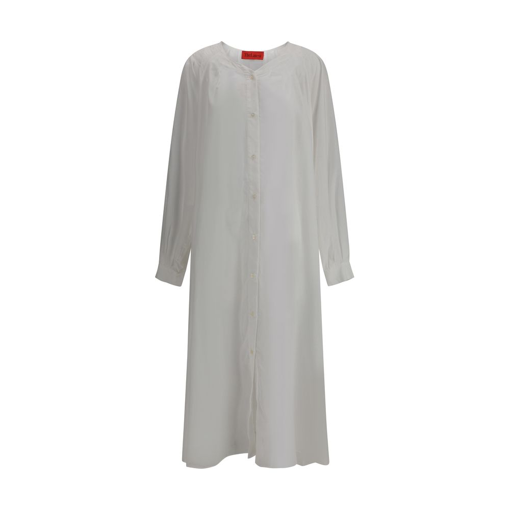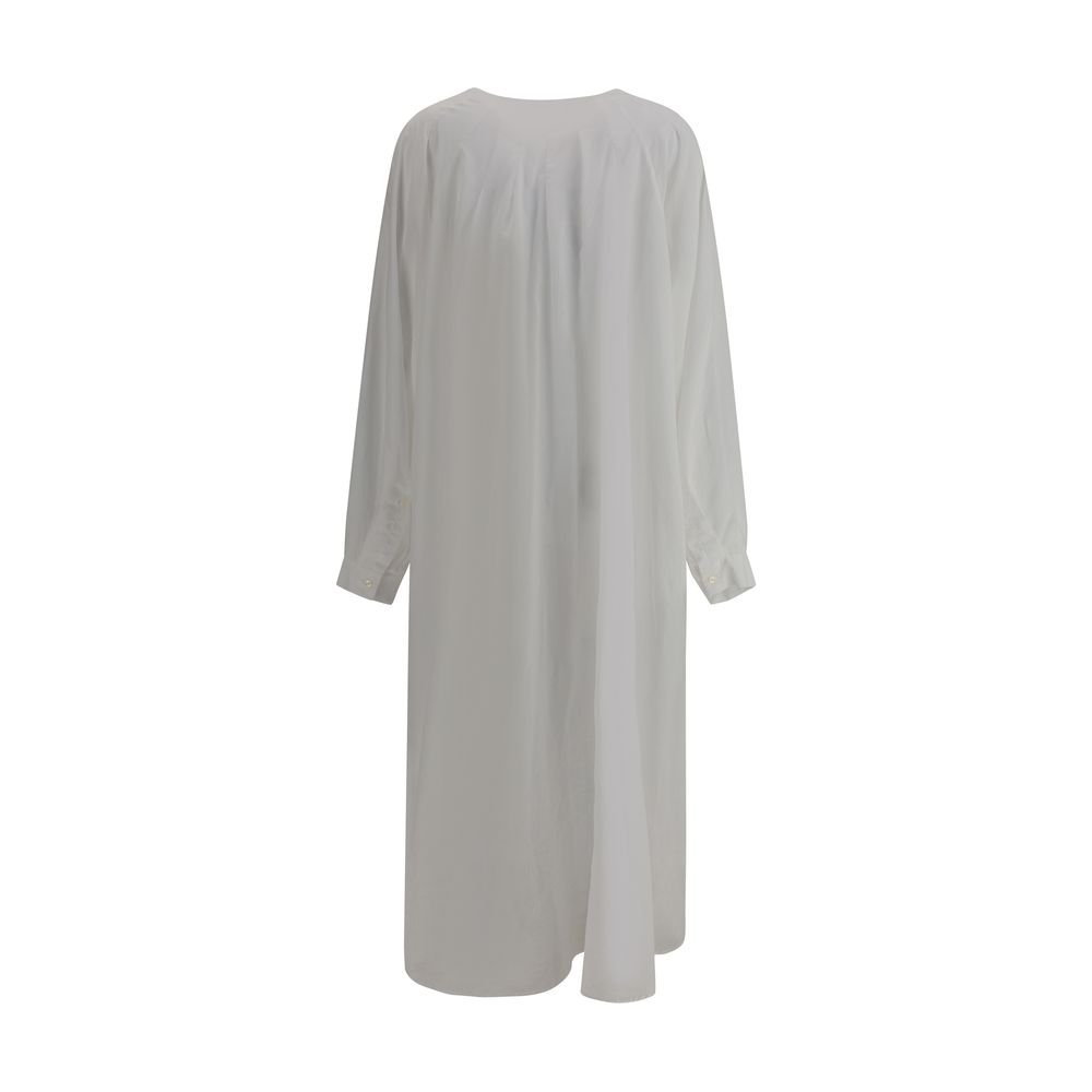 The Latest’s long chemisier Dress is made of cotton with a lightweight and versatile design. The front button closure and wide raglan sleeves lend a relaxed yet sophisticated look. Adjustable button cuffs allow you to customize the fit of the sleeves, while the two side welt pockets add practicality. The semi-transparent design and oversize fit complete the dress, creating a sleek, contemporary effect. Ideal for those seeking a comfortable yet stylish garment.