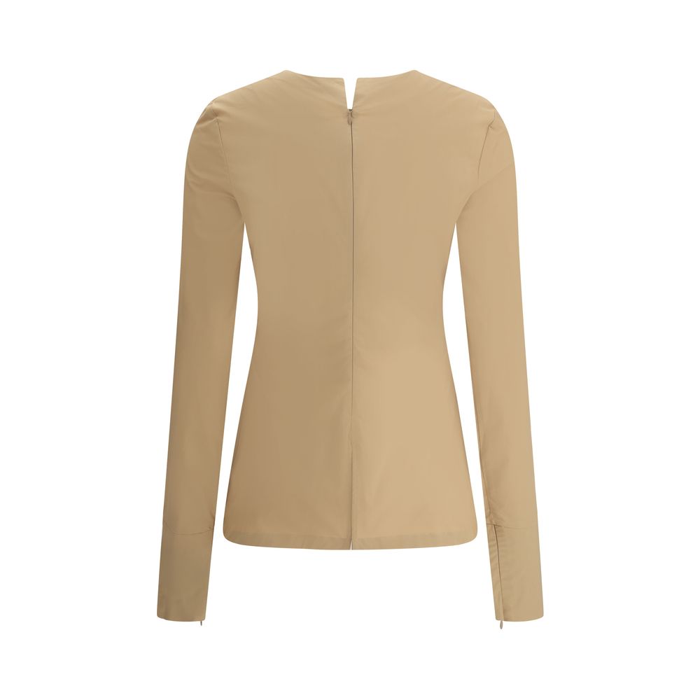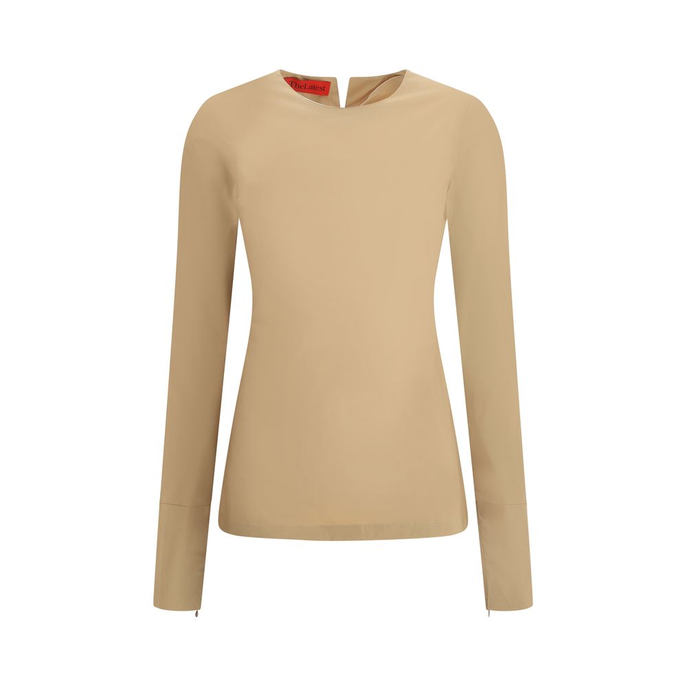 The Latest’s Terry Long Sleeve Jersey by The Latest, made of cotton, combines elegance and practicality. It features a hidden back zipper closure, two front darts for a structured fit, and adjustable zippered cuffs. The fitted design enhances the silhouette, making it a refined and versatile garment.