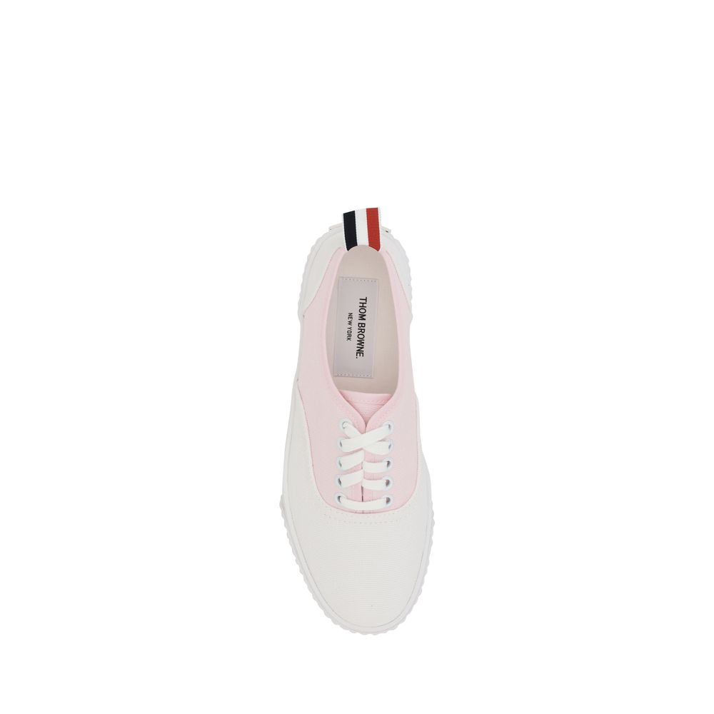 Cotton Sneakers by Thom Browne, paneled design, lace-up front closure, heel pull for easy on and off, flat rubber sole, branded insole.